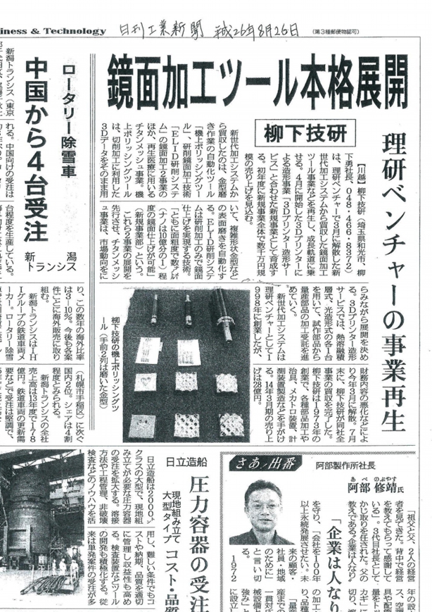 日刊工業新聞に『超モノづくり部品大賞』の受賞が発表され、弊社の機上ポリッシングツールが、機械部品賞を受賞いたしました。