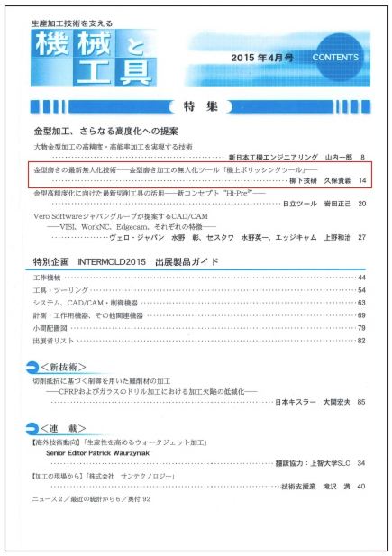 「機械と工具 2015年4月号」に機上ポリッシングツールの記事が掲載されました。